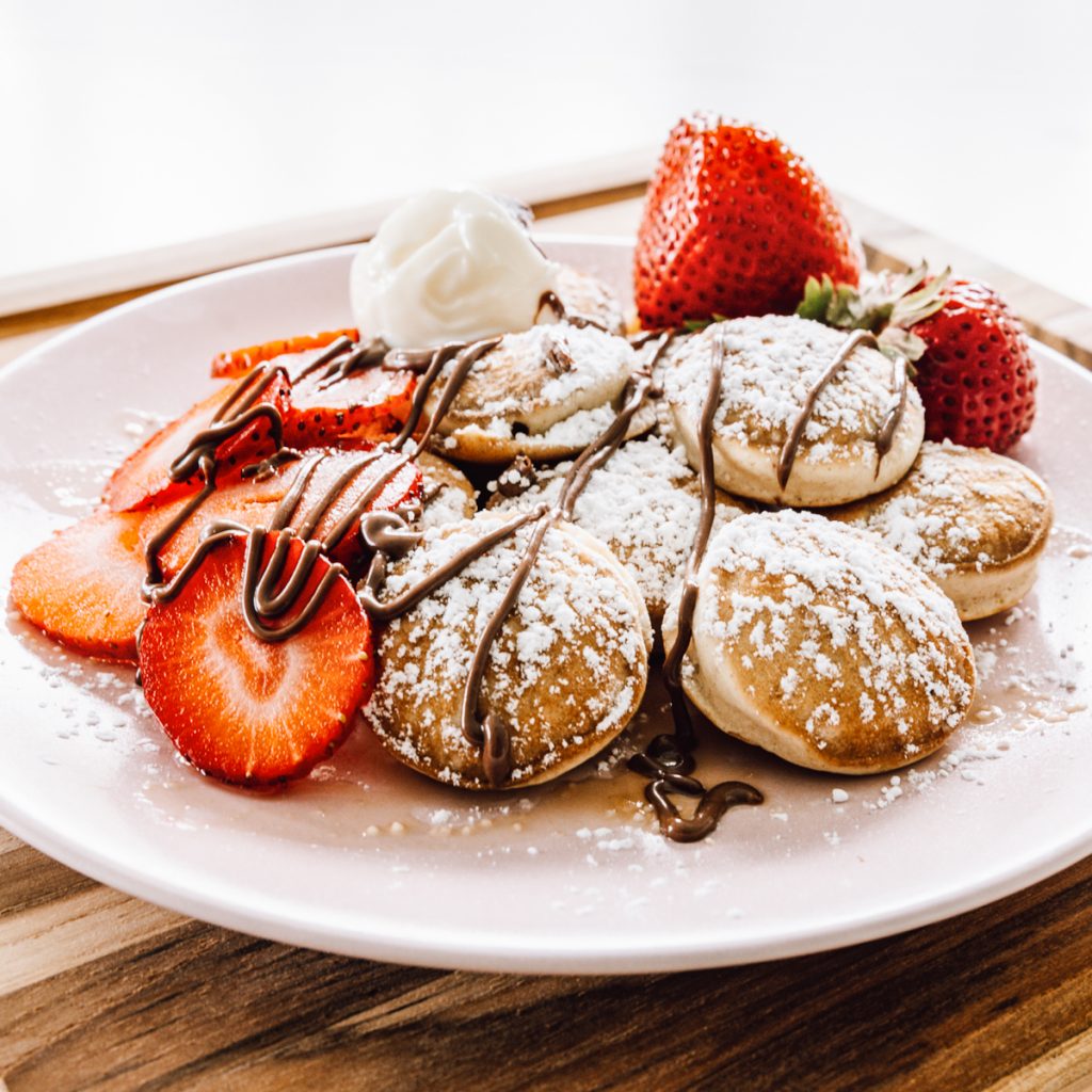 These Dutch mini pancakes are usually served with a simple but divine topping of melted butter and powdered sugar, but we offer creative combinations like Nutella, fruit, and whipped cream, making every bite an experience.
